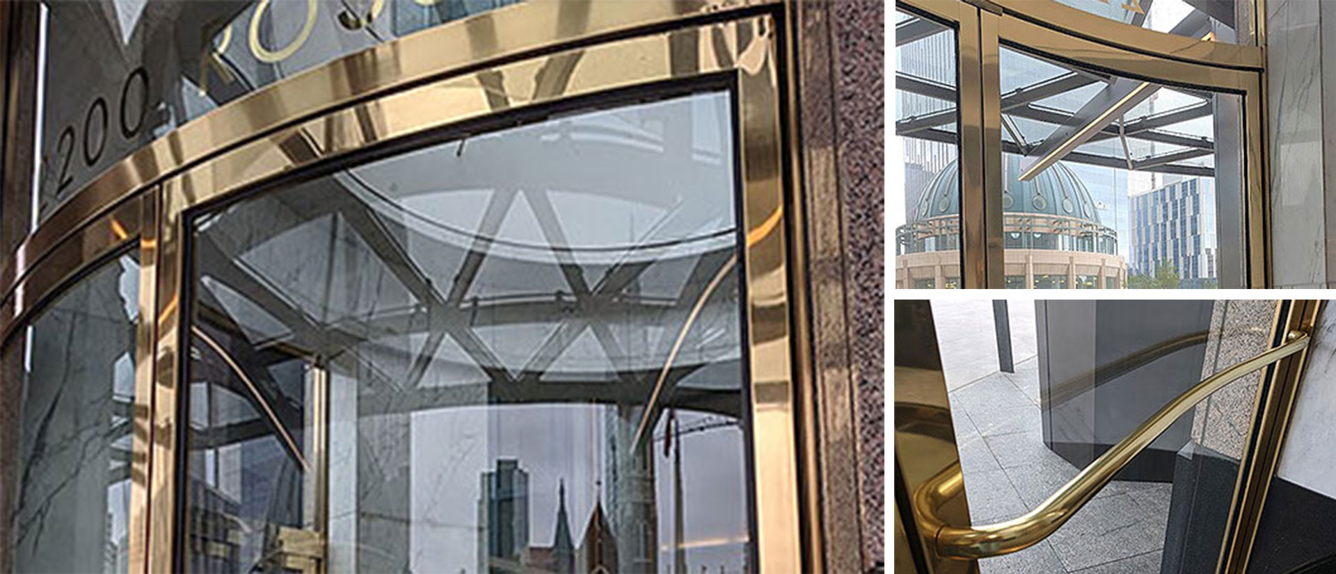 - Seamless Integration: The curved brass components fit perfectly with the entry doors and aluminum extrusions, preserving a high-end architectural aesthetic.