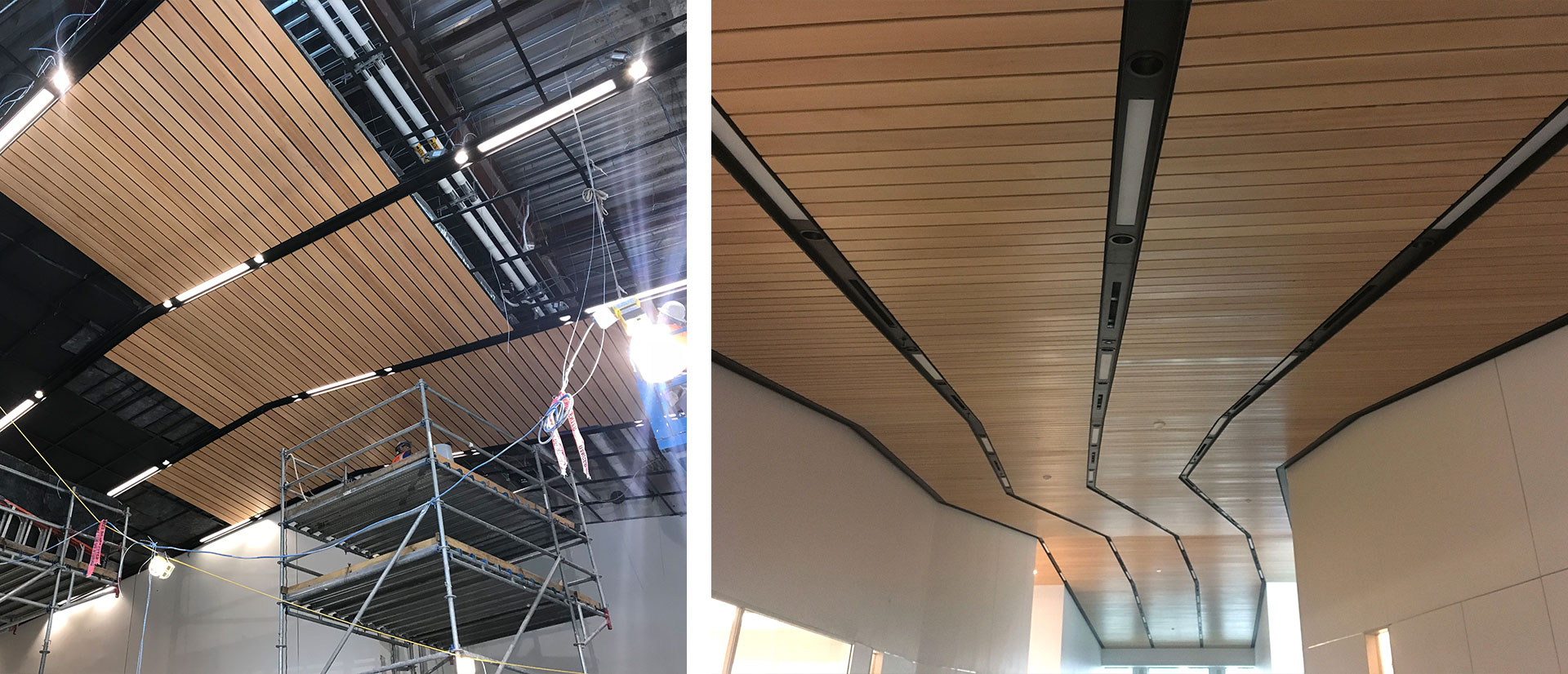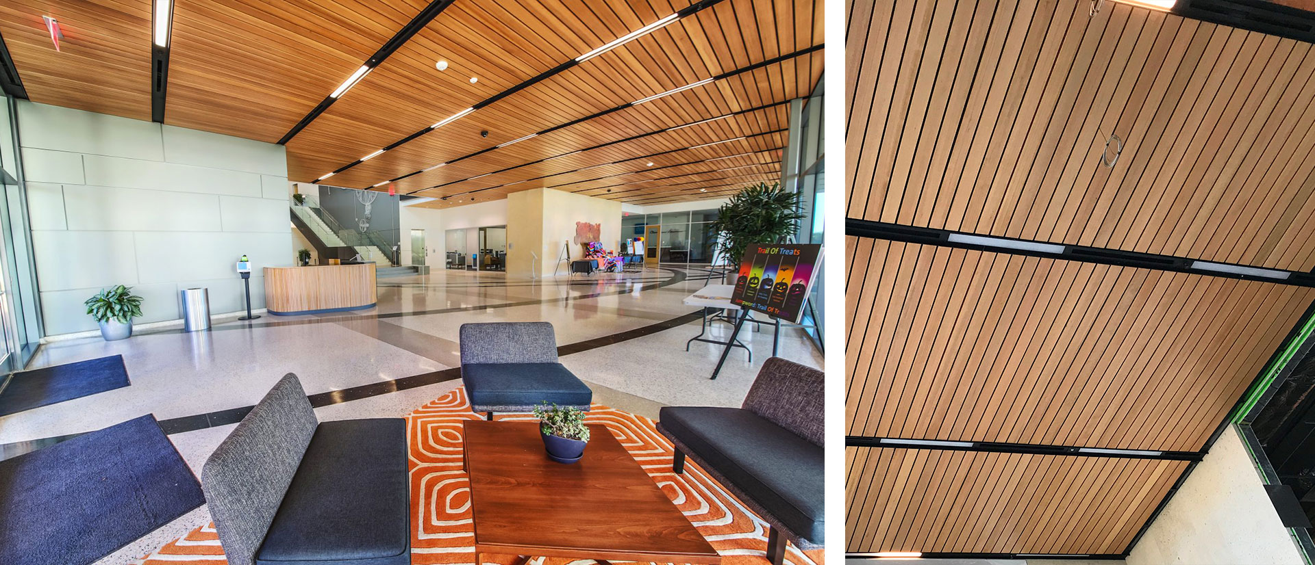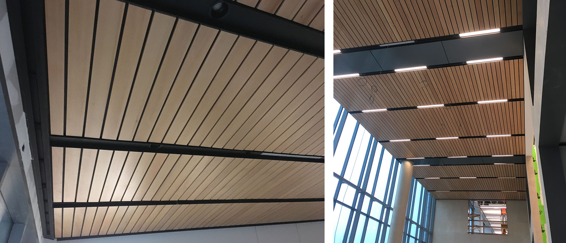 - Solution: Astro collaborated with the glazing contractor and the general contractor to incorporate fixture locations based on architectural drawings and field measurements. Each section was fabricated with precise cutouts for diffusers and lights.
