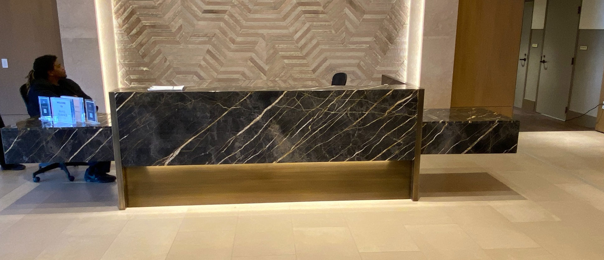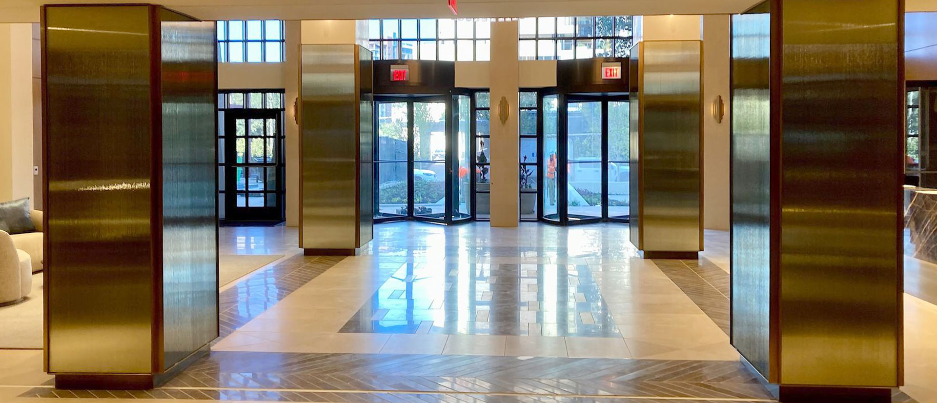 Hines Maple Terrace, a residential high-rise in Dallas, TX, required a broad range of high-end architectural metals for its common areas. The project demanded precision craftsmanship and seamless installation to complement the luxurious design of the space. The diverse scope included various metal finishes and custom fabrications, each requiring careful execution to meet the client’s vision.