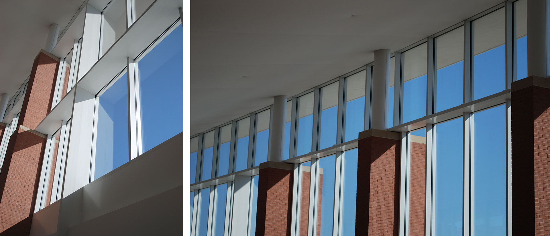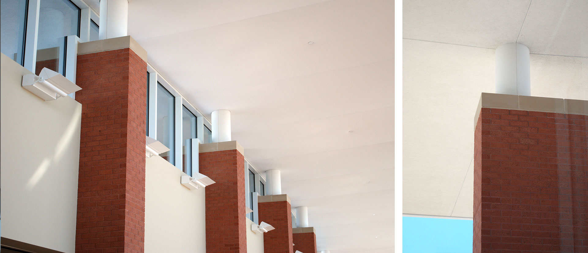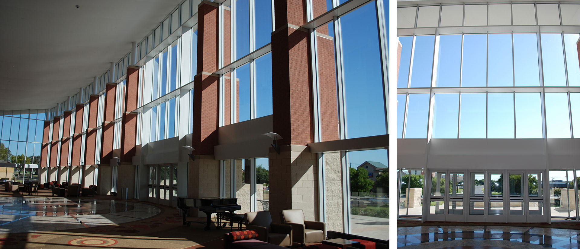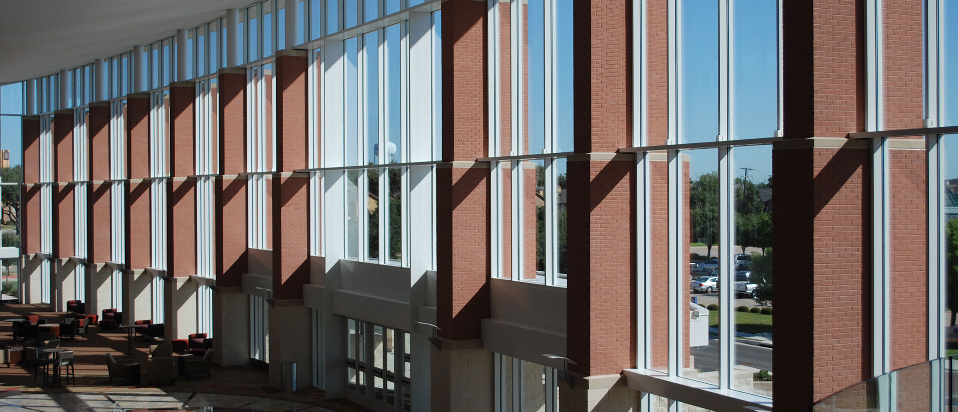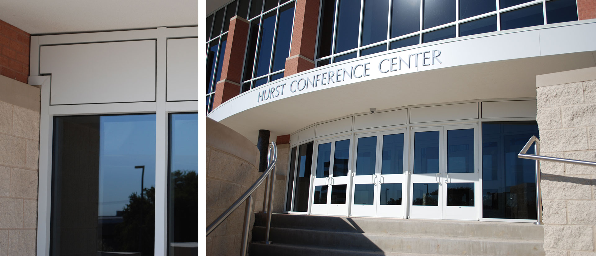 - Cohesive Design: The bone white Kynar-painted aluminum cladding, round column covers, and spandrel panels provided a seamless and unified look across the building’s façade, enhancing the Hurst Conference Center’s overall aesthetic.