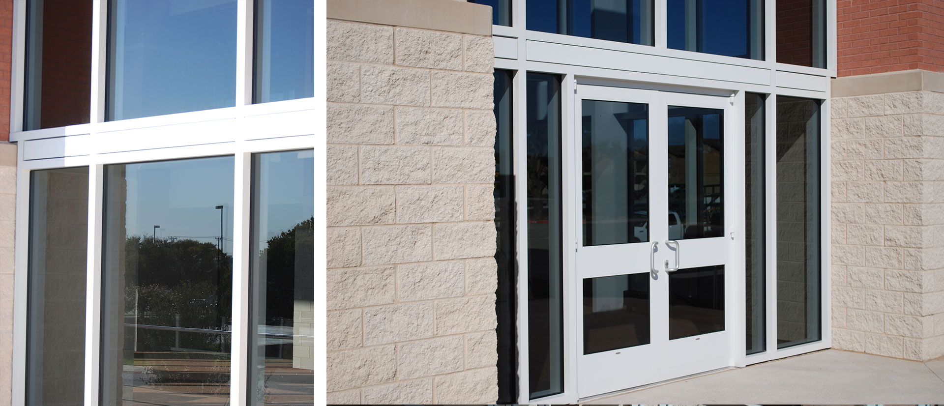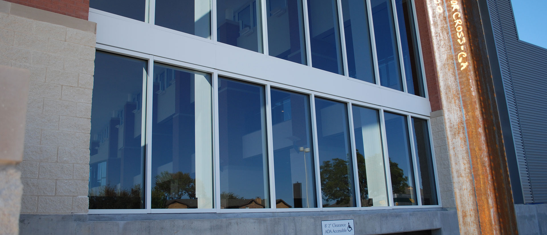 Once fabricated, Astro coordinated with the glazing contractor for the delivery and installation of the metal components. The cladding was applied to cover the extrusions, the column covers were positioned on top of the brick columns, and the spandrel panels were installed above the doors. Astro made sure that all components fit perfectly and aligned with the project’s design vision.