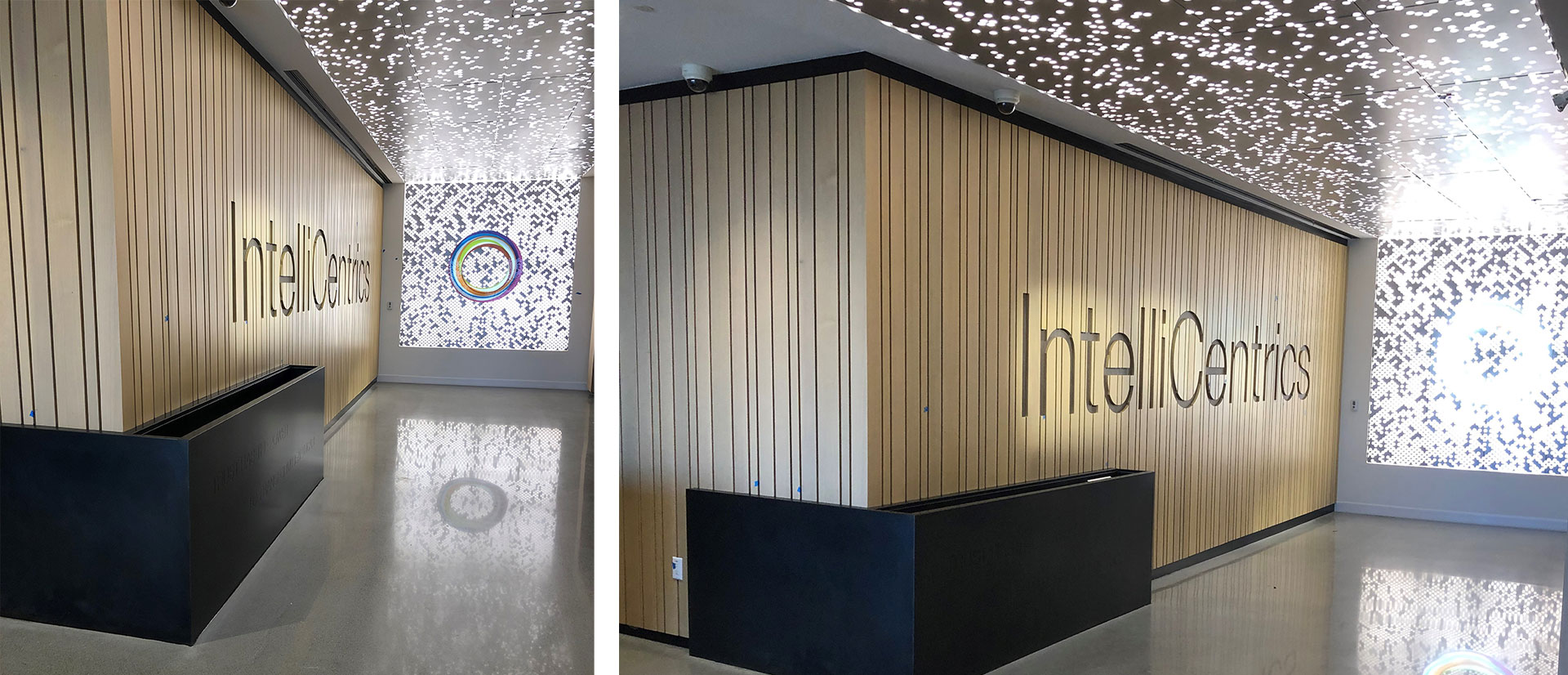 - Customization and Detailing: Every element was custom fabricated, ensuring that the dimensions, angles, and finishes were explicitly tailored for the Intellicentrics headquarters. Special attention was given to the joints and seams to ensure smooth, flawless connections that would be visually appealing and structurally sound.
