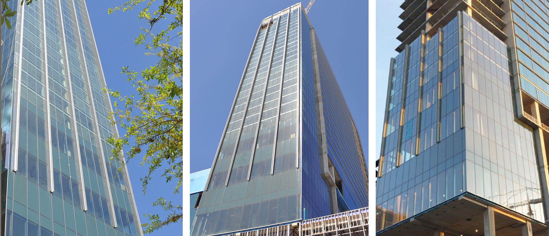 - Custom Fabrication & Alignment: Astro’s team utilized advanced fabrication techniques to ensure that each section of the tapered fins aligned seamlessly with the adjacent sections, achieving the desired visual taper throughout the entire height of the building.