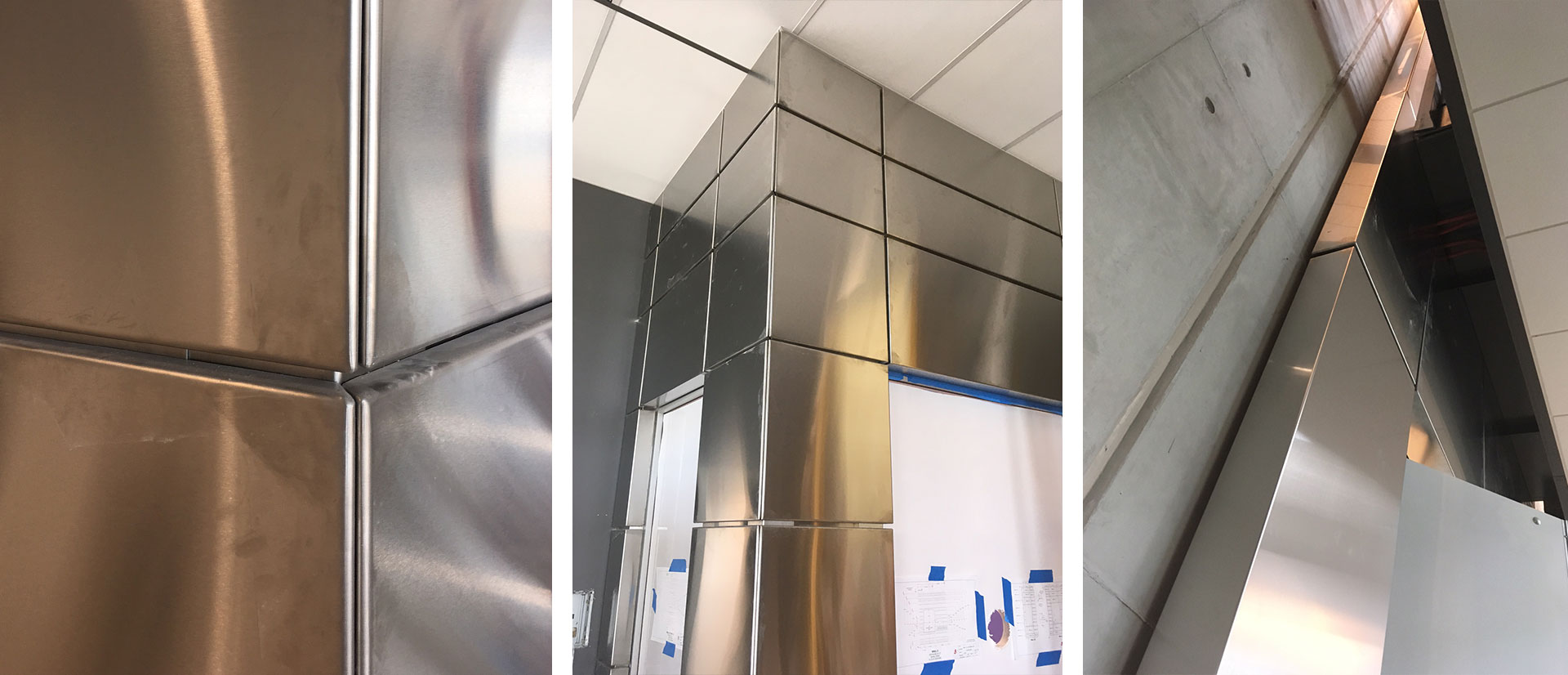 - Formed and finished each brushed stainless steel wall panel with exact spacing for reveals.