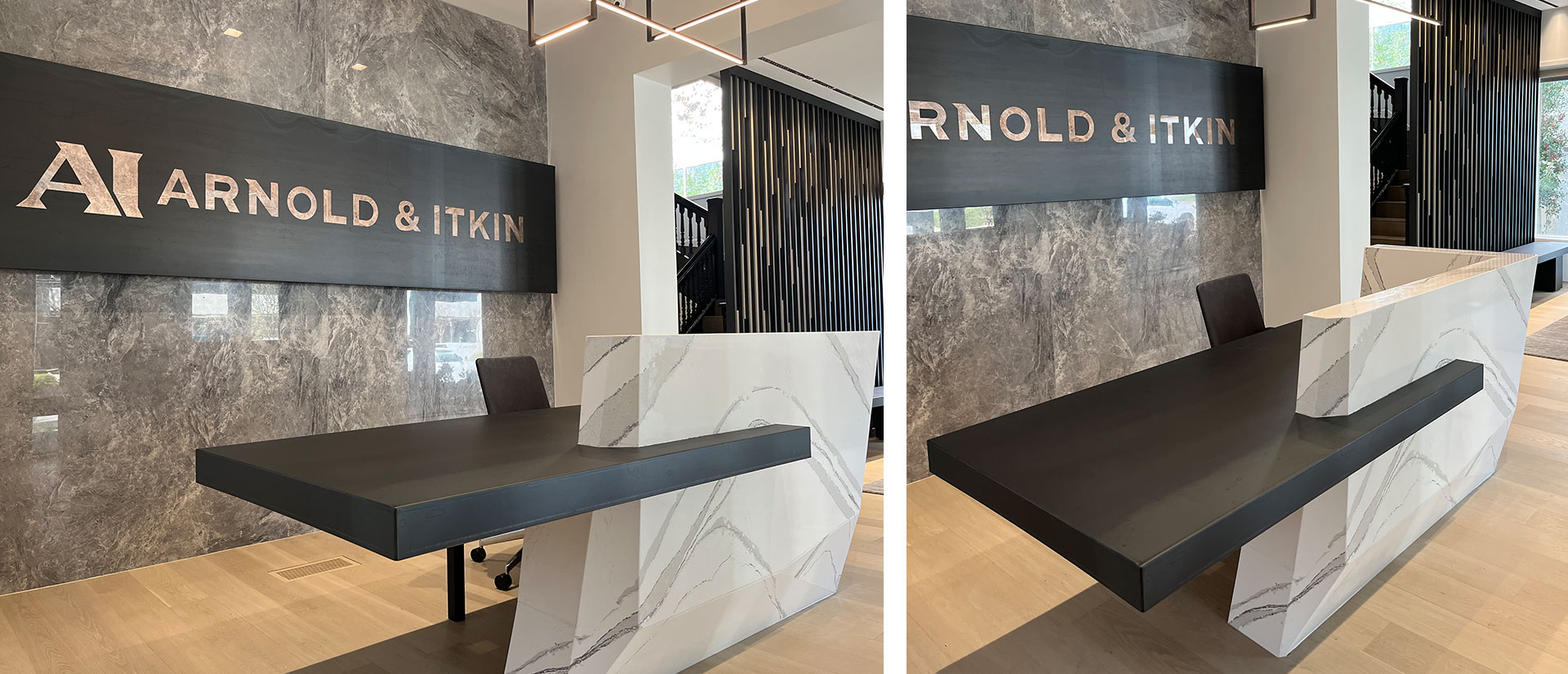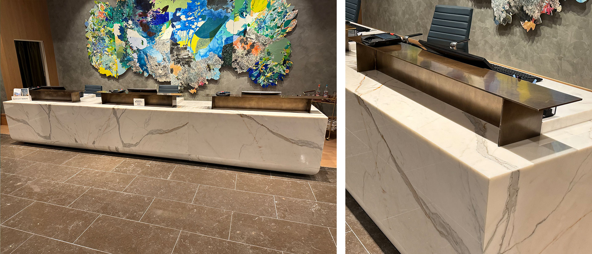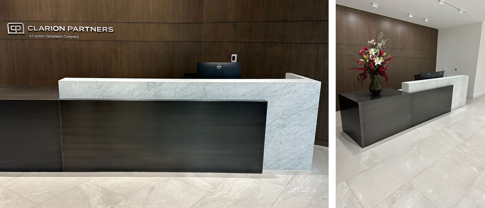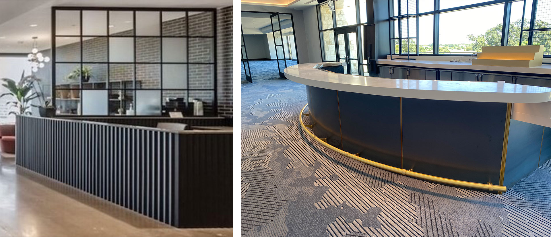 Astro creates custom reception desks that serve as bold focal points and functional workstations in commercial, hospitality, and institutional environments. Whether sleek and contemporary or warm and textural, our desks are crafted from premium metals—such as stainless steel, brass, blackened steel, and copper—and often combined with wood, stone, or glass for a refined, multi-material aesthetic. Designed to reflect your brand and architectural vision, each piece is fabricated with precision detailing, integrated technology access, and lasting durability. With Astro, your front desk becomes more than a point of entry—it becomes a statement of identity.